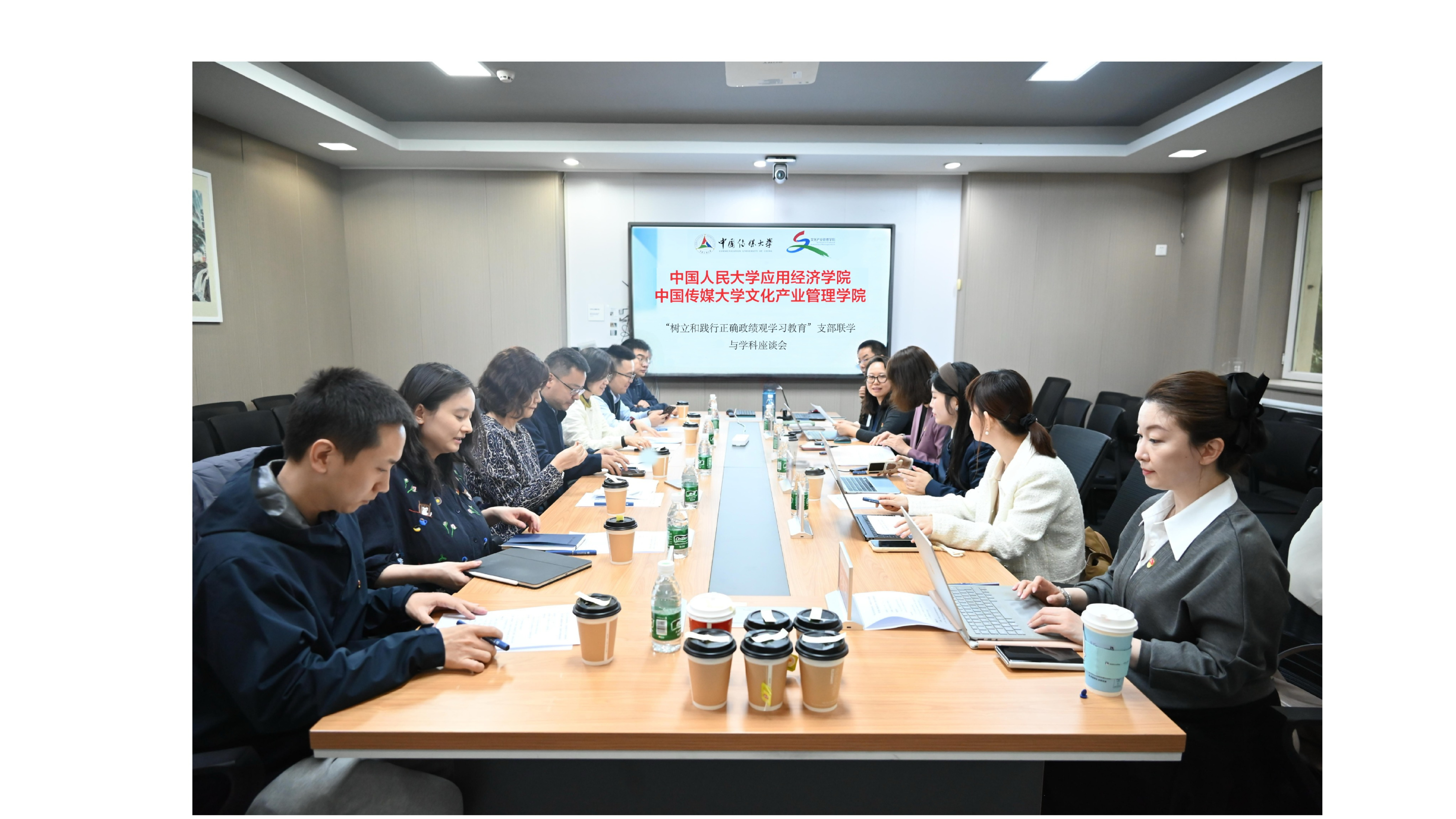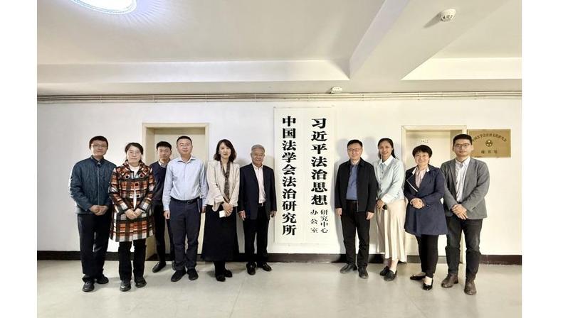 4月24日上午,中国传媒大学党委常委、副校长李新军率队赴中国法学会法治文化研究会开展交流座谈。双方围绕落实习近平法治思想与习近平文化思想、深化文化法治、法治文化研究,培养高素质复合型人才等议题进行了深入探讨。中国法学会法治文化研究会常务副会长兼秘书长周占华出席并主持座谈会。中国法学会法治文化研究会副秘书长朱乾乾、李伟伟,《民主与法制时报》主任编辑李旭,研究会秘书处肖咪参加座谈。中国传媒大学文化产业管理学院党委书记郇𤩽,法律系主任、文化法治研究中心主任郑宁,法律系文化法学教研室主任韩新华,民商与知识产权法教研室主任王晋,文化法治研究中心副主任程科参加了调研活动。座谈会上,周占华常务副会长对李新军副校长一行的到访表示热烈欢迎。他详细介绍了研究会的发展历程、组织架构及在理论研究、法治宣传、普法实践等领域取得的显著成就。周占华指出,研究会始终坚持以习近平新时代中国特色社会主义思想为指导,深入学习贯彻“两个结合”,在传承中华优秀传统法律文化、弘扬红色法治文化方面开展了大量扎实工作。他表示,中国传媒大学作为传媒领域的最高学府,在法治传播与文化育人方面具有独特优势,期待双方在课题研究、品牌论坛、法
