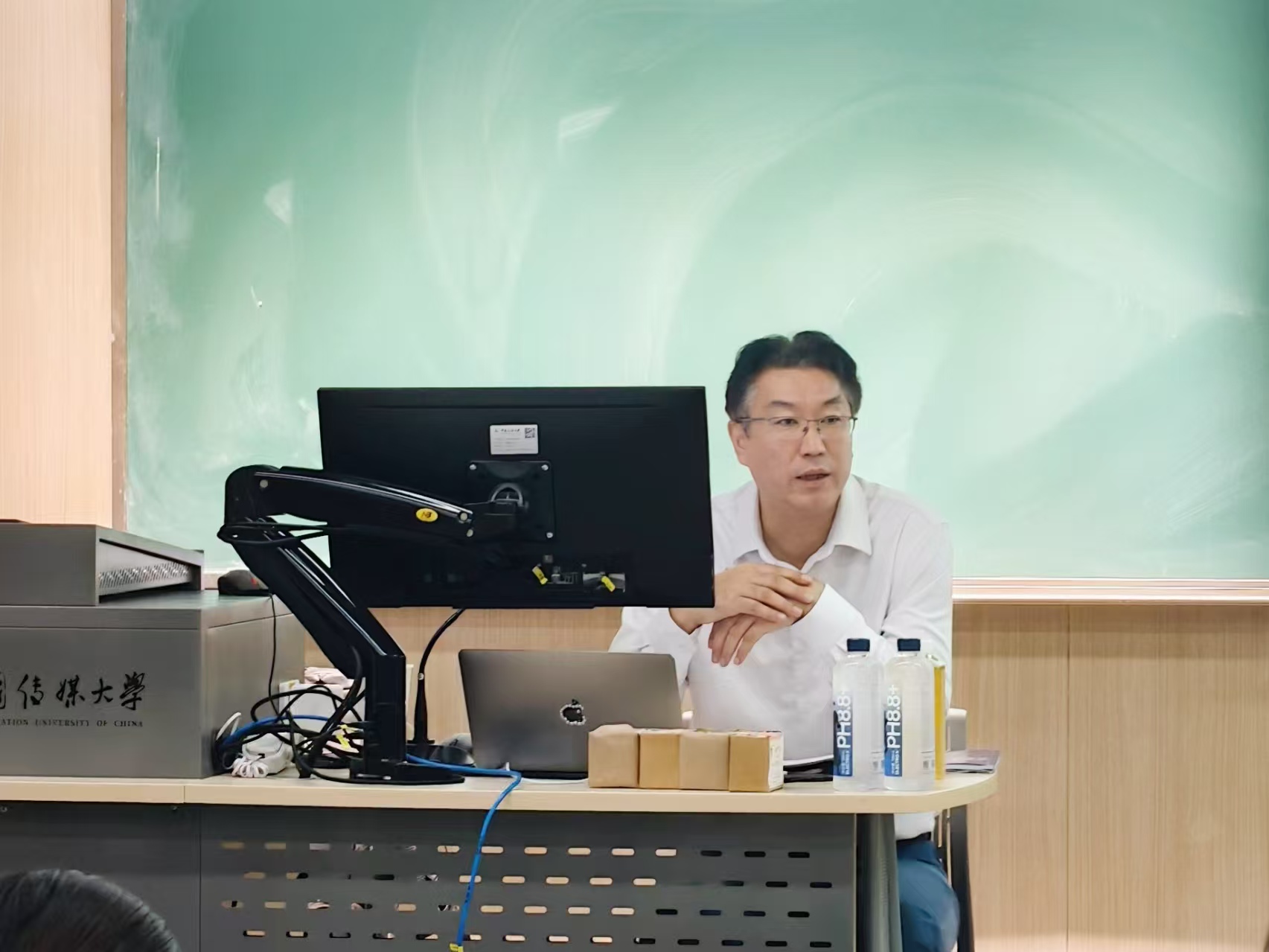 在互动提问环节,我院学生就“主流媒体应该如何在当下的新媒体环境中保持权威性和互动性的平衡”、“如何用小切口的视野来反映伟大时代的伟大故事”以及“主流媒体应该如何正确且有节制的利用好AIGC讲述地方故事”等问题展开提问,段世文结合新华网高品质电商直播有效提升各地优质产品销售额、新华网年轻人负责的“顶流工作室”以青春语态传播正能量获200亿+传播量等生动案例,对同学问题进行耐心解答。段总认为文化“无用之用,是为大用”,向上向善向美的文化内容,只要做好了,一定是人民喜欢、市场欢迎的优秀作品。他鼓励同学们积极投身文化产业,“读万卷书行万里路”,不断突破自己固有认知,讲好伟大中国故事。