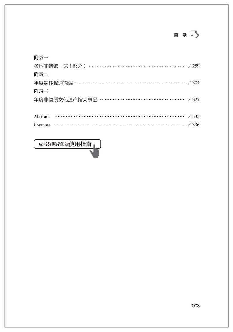 本书致力于为相关政策制定者、管理机构与从业人员提供参考,促进非遗馆在场馆建设、服务提升、资源整合及协同发展等方面形成合力,推动构建布局合理、功能完备、机制健全的非物质文化遗产传承体验设施体系,为非遗融入现代生活、服务人民群众贡献力量。
