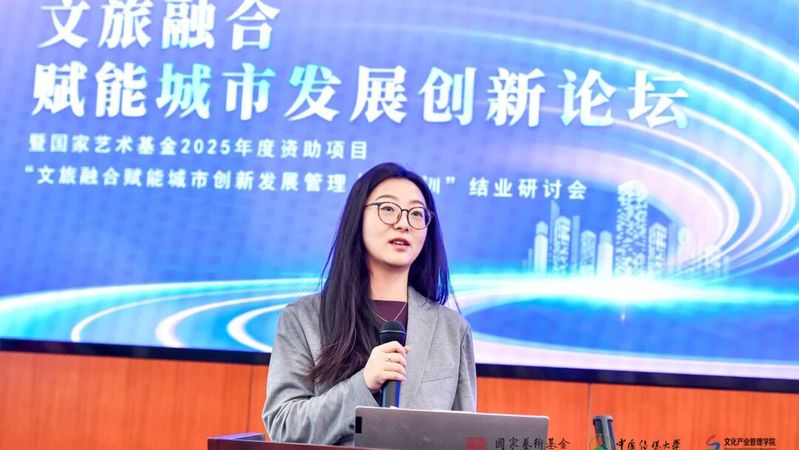 中国传媒大学文化产业管理学院党委书记郇瓛在致辞中表示,当前我国城市发展已迈入从“增量扩张”到“存量提质”的转型关键期,文旅融合成为破解“千城一面”困境、推进“人民城市”建设的关键路径。郇瓛介绍,学校及学院长期深耕文旅融合相关领域研究与实践,此次承接国家艺术基金相关培训项目,既是对行业发展需求的精准回应,更是服务国家战略的具体举措。她强调,项目结项并非终点,而是新的起点,期待全体学员未来成长为文旅融合领域的核心骨干力量;学院也将进一步深化“政产学研用”协同创新机制,强化“文化+科技”双轮驱动发展模式,坚守立德树人初心,与各方携手为城市高质量发展注入文旅动能。